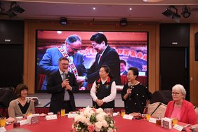 Zum Abschluss des Delegationsbesuchs in Hualien lud der Landkreis zu einem feierlichen Abendessen ein, bei dem die Gäste nicht nur die landestypischen Speisen kennenlernten, sondern sich auch in der Zubereitung von Mochi-Kugeln und in einheimischen Tänzen üben konnten. Neben Vertretern des Landkreises und der Studienreisegruppe nahmen auch Deutsche, die derzeit in Hualien leben, an dem fröhlichen und bereichernden Austausch teil.