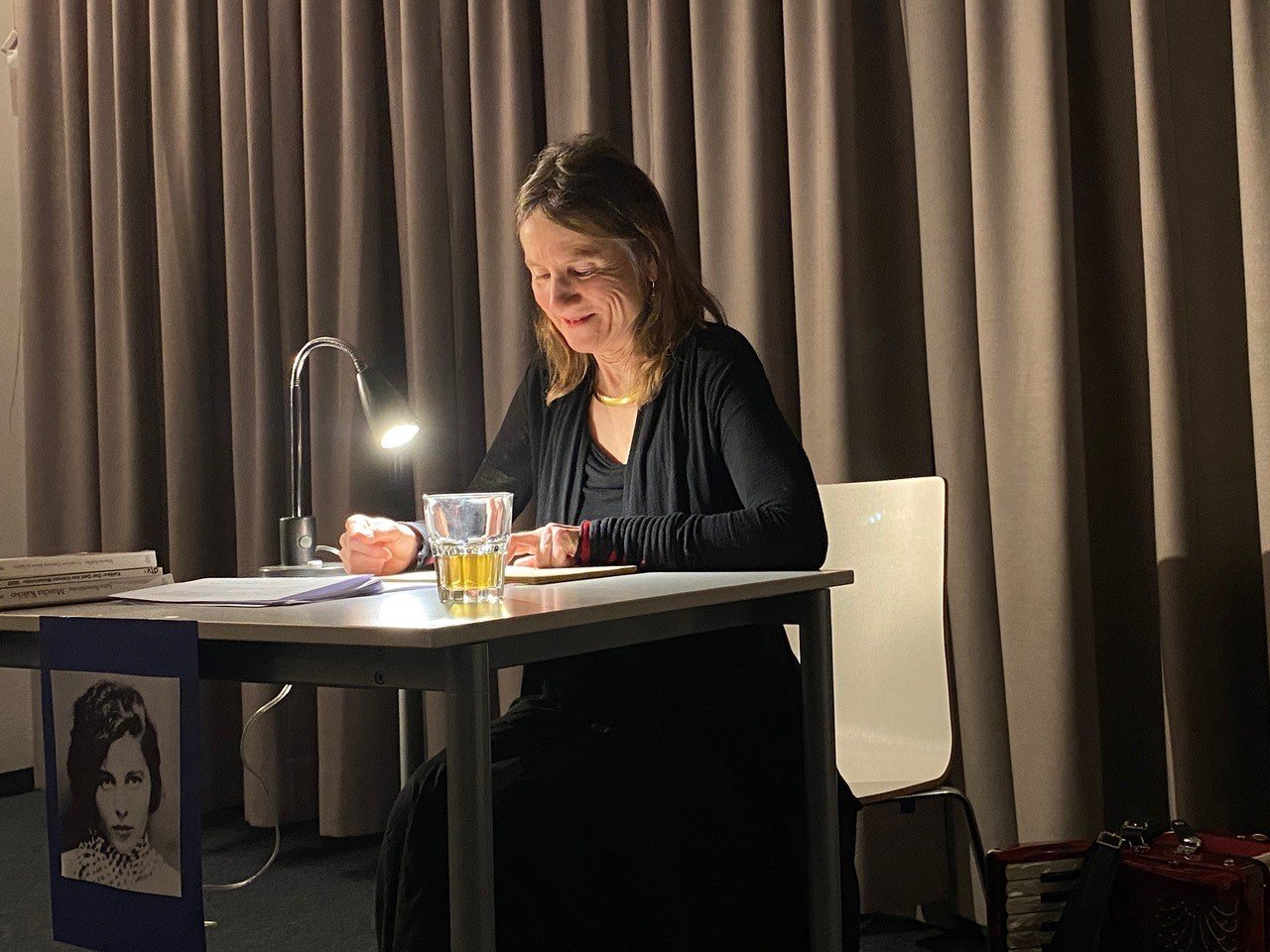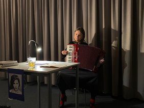 Die Schauspielerin und Sprecherin Bella Schupp führte das begeisterte Publikum durch das Leben und die verschiedenen Schaffensperioden der Künstlerin – musikalisch begleitet von ihrem Akkordeon.