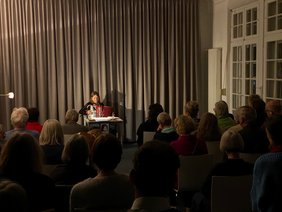 Mit Mascha Kalékos Lyrik verwandelten Elisabeth Carr und die Schauspielerin Belle Schupp unseren Kursraum 12 - den ehemaligen Salon der Villa Bayerlein – in einen klangvollen Kulturraum.