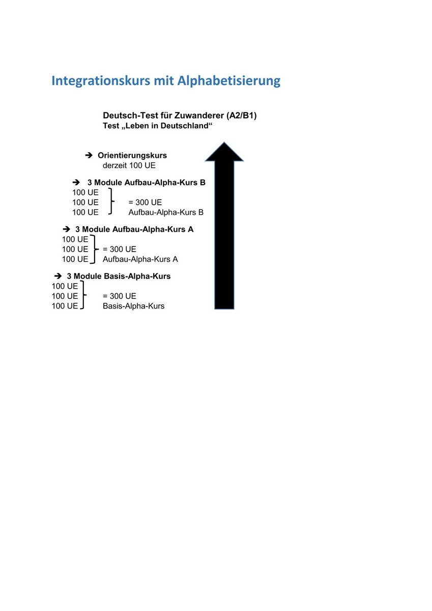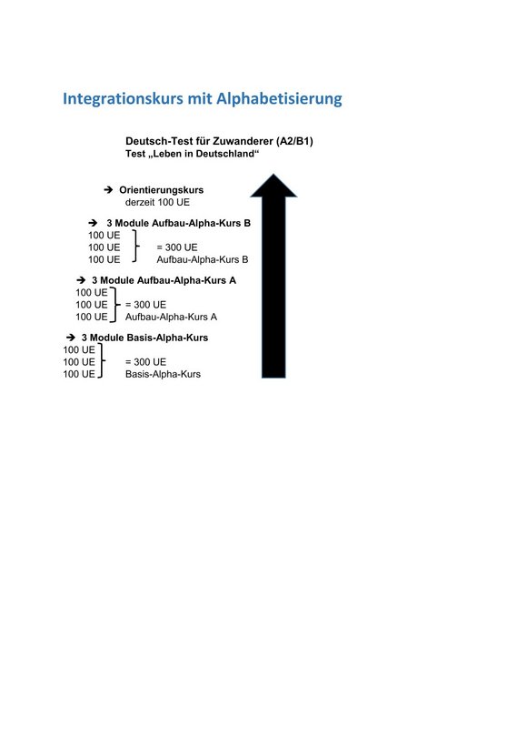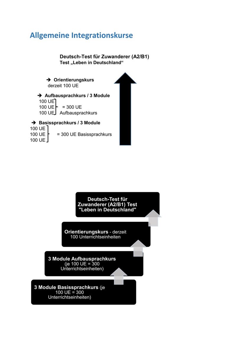 Im Anschluss (optional) Teilnahme am Orientierungskurs (weitere 100 UE), Abschlusstest: "Leben in Deutschland"