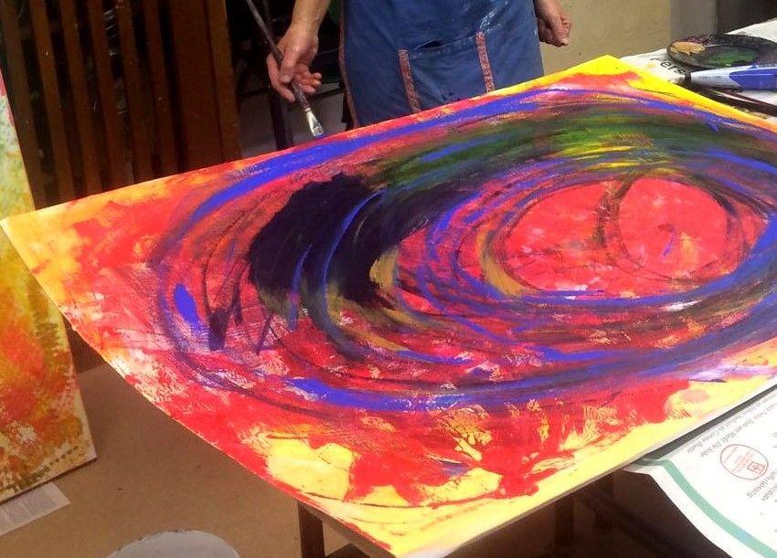 Bildnerische Arbeit mit Acrylfarben und das Spiel mit dem Experiment öffnen die Tür zum kreativen Potential. Wir folgen unseren Spuren auf dem Malgrund und lassen entstehen, was sich formen will. Immer neue Möglichkeiten eröffnen sich durch das Spiel der Intuition, mit Bewegung, Farbe, Form und Materialerkundung. Es gibt keinen Leistungsaspekt, die Entstehung aus sich selbst regiert das Tun. Wir experimentieren, spüren der schöpferischen Urkraft nach, geben dem Zufall Raum und lassen uns überraschen, wohin er uns führt. Unsere Schöpferkraft mit Phantasie und Freude erfahren!